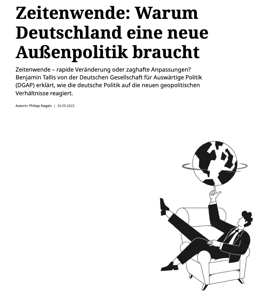 Benjamin Tallis: Wir können die Zeitenwende als etwas verstehen, das uns widerfährt, oder als etwas, das wir tun. Bei der ersten Sichtweise handelt es sich um eine fundamentale geopolitische Verschiebung. Diese Verschiebung wurde am deutlichsten durch die Ausweitung der russischen Invasion in die Ukraine im Februar 2022. Diese war in gewissem Maß allerdings eine Fortsetzung von Trends, die sich schon abgezeichnet hatten: der Aufstieg autoritärer Staaten als Konkurrenz zu den Demokratien des Westens. Jetzt beobachten wir eine systemische Rivalität zwischen Demokratien und Autokratien. Die Reaktion auf diese geopolitische Verschiebung markierte ihrerseits eine Zeitenwende – etwas, das wir tun.
